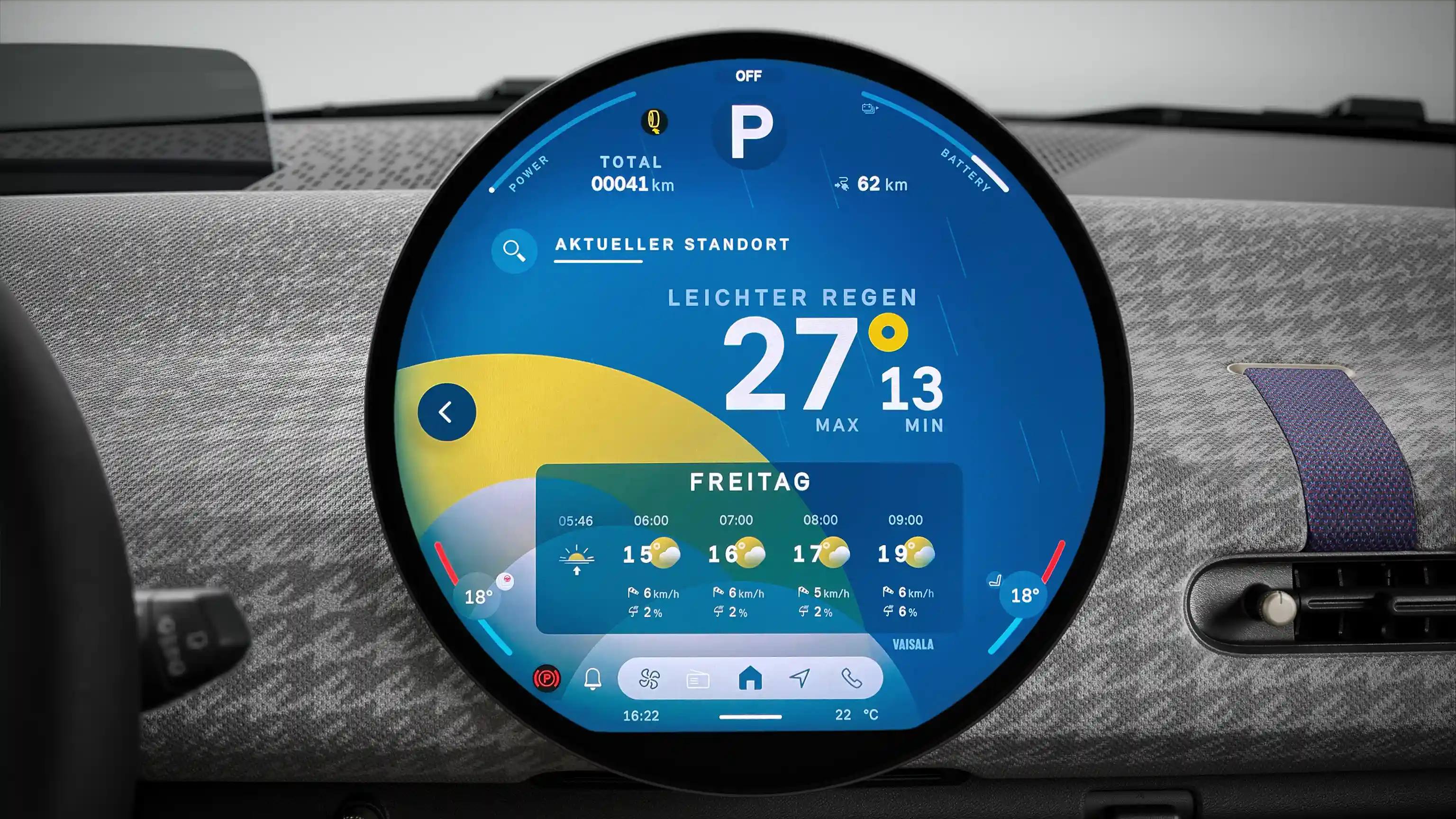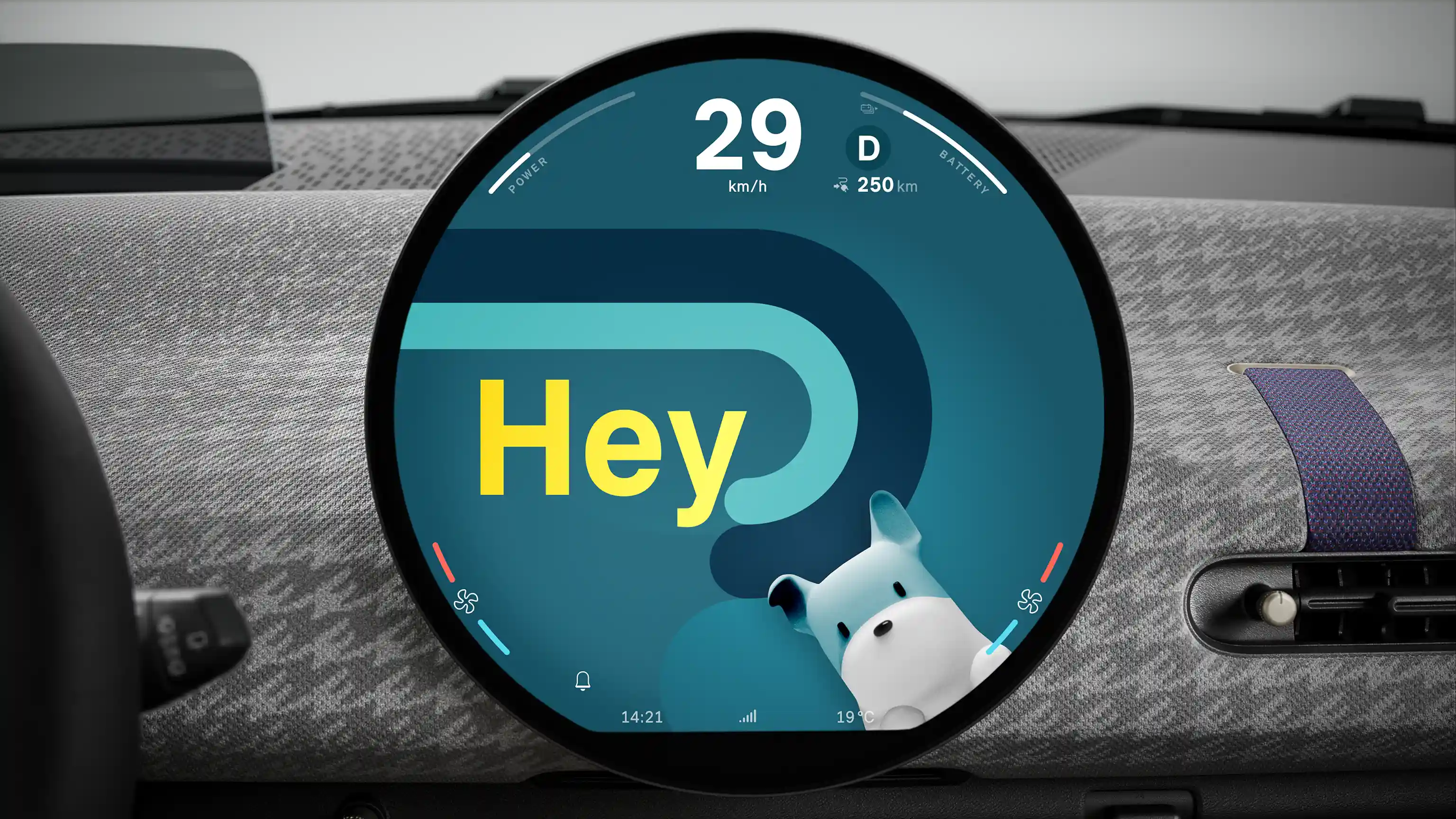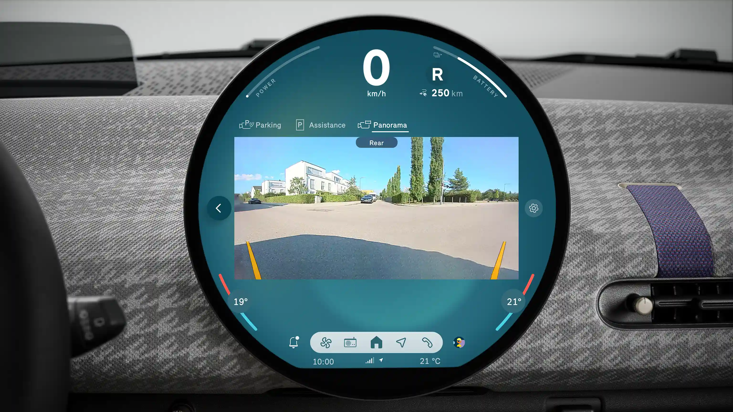 Ikonický centrálny displej s priemerom 240 mm a vysoko kvalitným sklom je vaším prístrojovým panelom aj palubným informačným, zábavným a asistenčným strediskom. Zároveň je to celosvetovo prvý displej kruhového tvaru.