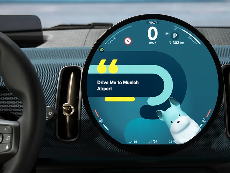 Štandardný MINI Intelligent Personal Assistant vám umožní hlasové ovládanie funkcií, ako je napríklad navigácia, telefón, rádio, teplota, informácie o ceste mnohých ďalších. Systém sa dá aktivovať pomocou pozdravu „Hey MINI“ alebo stlačením tlačidla hlasového zadávania na volante. To najlepšie je, že si pre svojho osobného asistenta môžete vybrať z dvoch rozličných avatarov: Buď štylizovanú verziu vášho MINI, alebo maskota MINI menom „Spike“ – za extra príplatok.